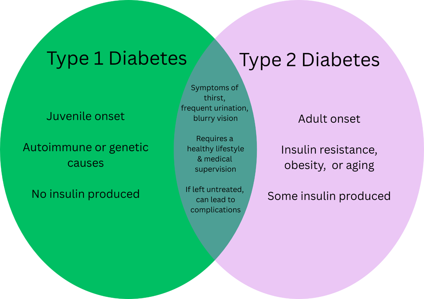- Management strategies differ, with Type 1 requiring insulin therapy and Type 2 often manageable through lifestyle changes and medications.